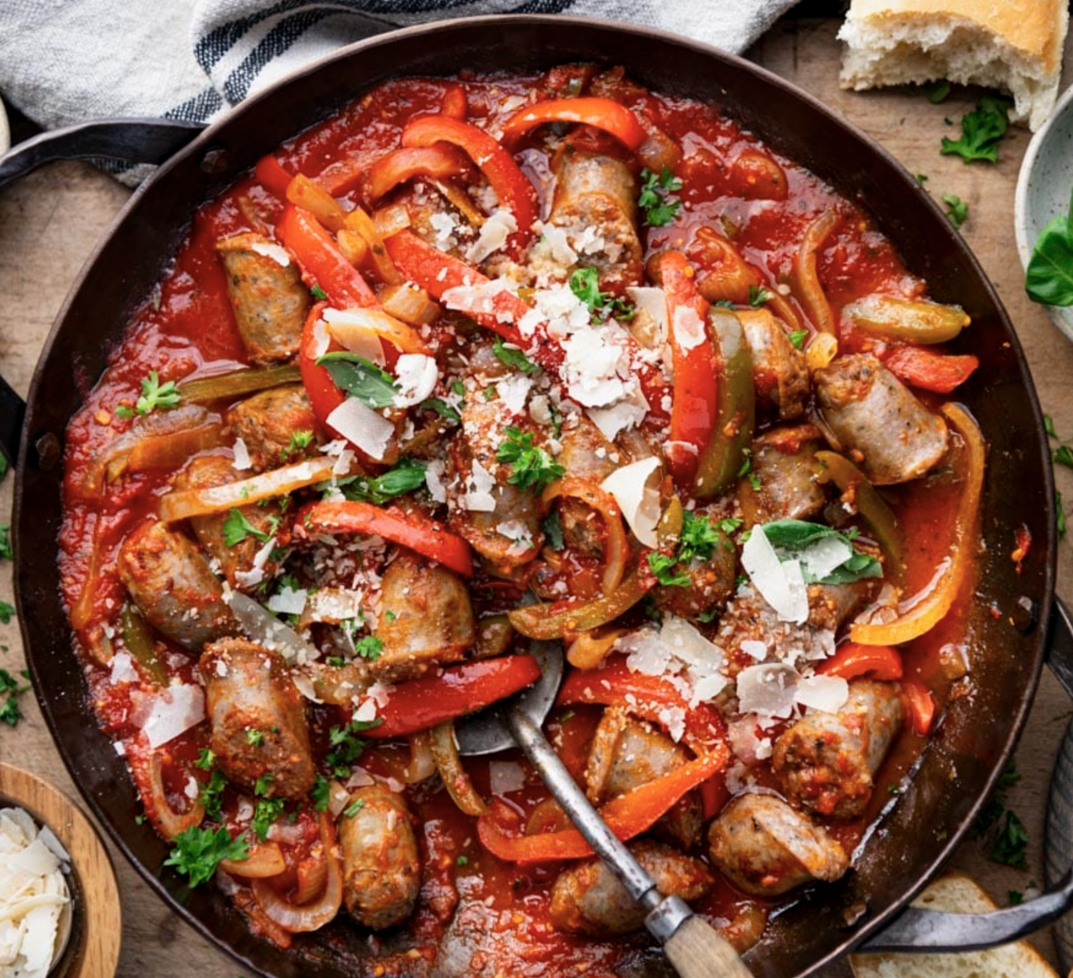 Entrees || Italian Sausage with Fire-Roasted Peppers & Baked Potato Gnocchi with Pesto and Fresh Mozzarella