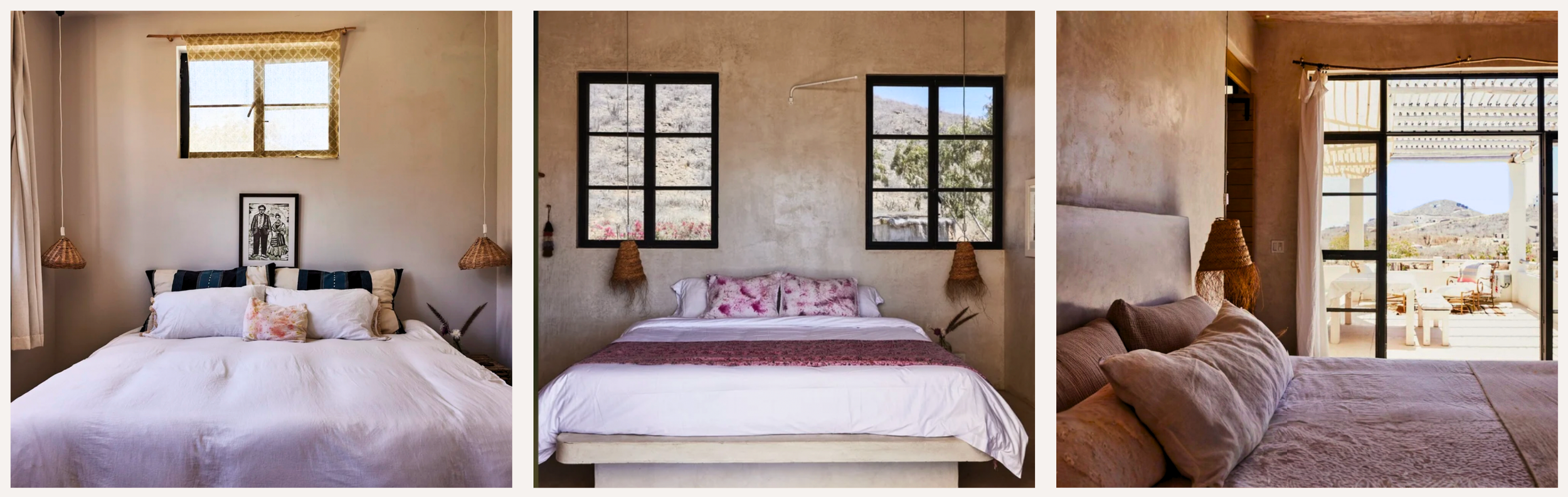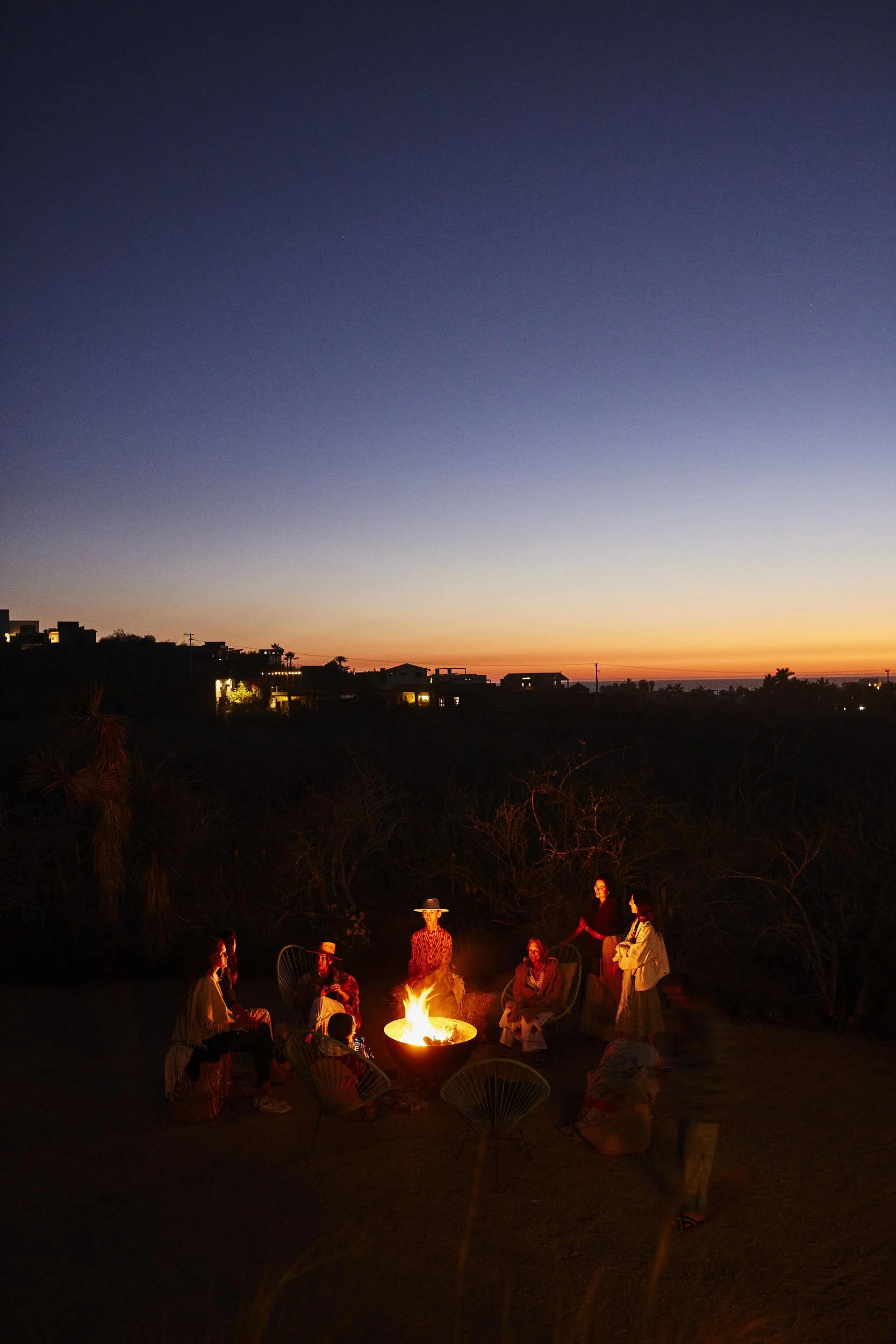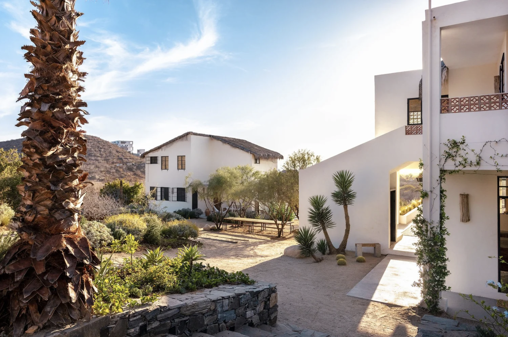 El Campo is a creative retreat space inspired by the slow, soulful pace of the Baja. Overlooking the Pacific Ocean and the farmlands of Playa Pescadero, El Campo sits just ten minutes south of Todos Santos and fifty minutes north of Cabo San Lucas. Created to support movement, connection, and rest, the property blends seamlessly into the desert-to-ocean landscape through a soft white palette, native woods, pulito concrete walls, and handcrafted tile accented by vibrant textiles.